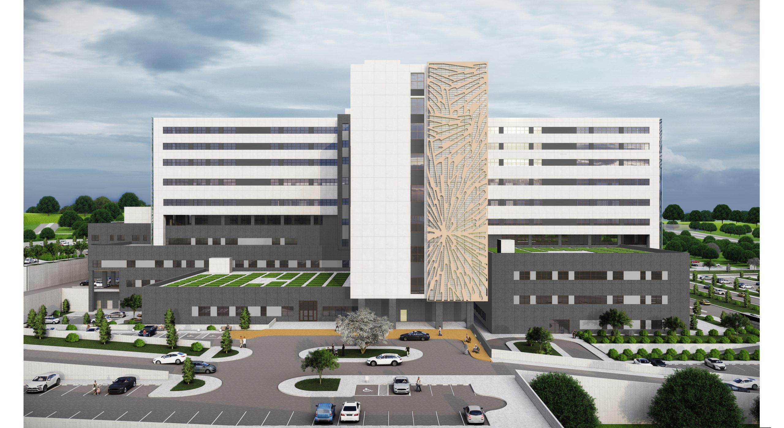 Yapı Genel , Kadın ve Çocuk , KVC ve Onkoloji olmak üzere dört farklı branş hastanesinden oluşmaktadır. Arazide 40 metre kot farkı vardır. Bu sebeple;Ana Hastane binası topografya ile uyumlu olacak şekilde tasarlanmış, farklı kotlardan blok girişleri düşünülmüştür. Hastanenin Ana giriş kotundan Genel ile Kadın ve Çocuk hastanesi poliklinik girişleri ile galerili sirkülasyon omurgası girişi sağlanmıştır. Ana girişin bir üst kotunda ise KVC ve Onkoloji poliklinik girişleri bulunmaktadır.