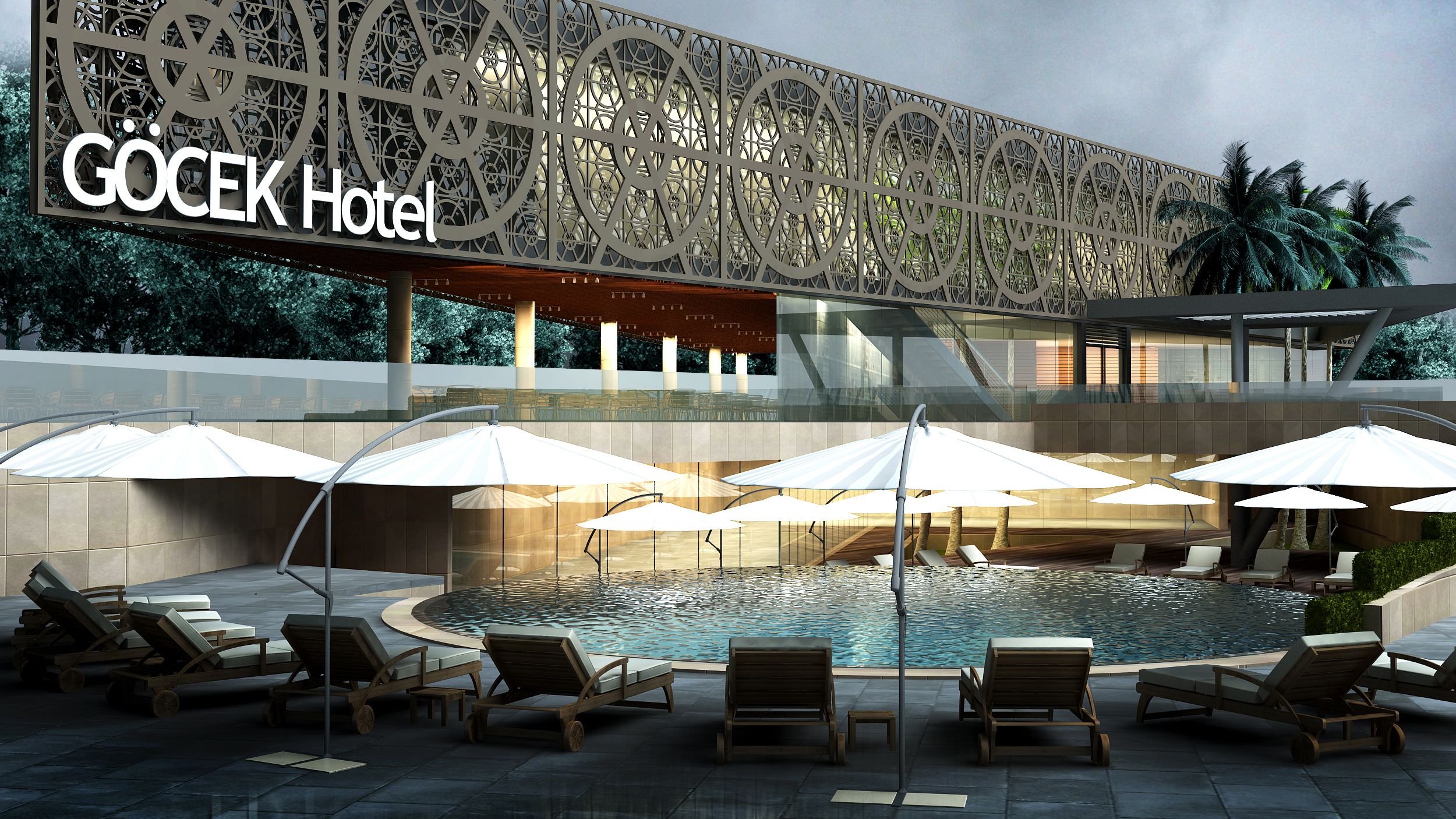 Göcek Marina’da bulunan 2.000 m2 meyilli arsa üzerinde yer alan Butik otel, zemin kat boşaltılarak tasarlanmış, yatak odaları deniz manzaralı olarak 1. katta, kapalı aktivite alanları ise alt zemin katta tasarlanmıştır. Boşaltılmış zemin kat, gölgeli boşluğu ve deniz – havuz manzarası ile Marina içinde sosyal aktivite alanı olarak kullanılacak şekilde planlanmıştır. Mimari olarak yapı yüzü Ahşap Mesh olarak önerilmiştir.
