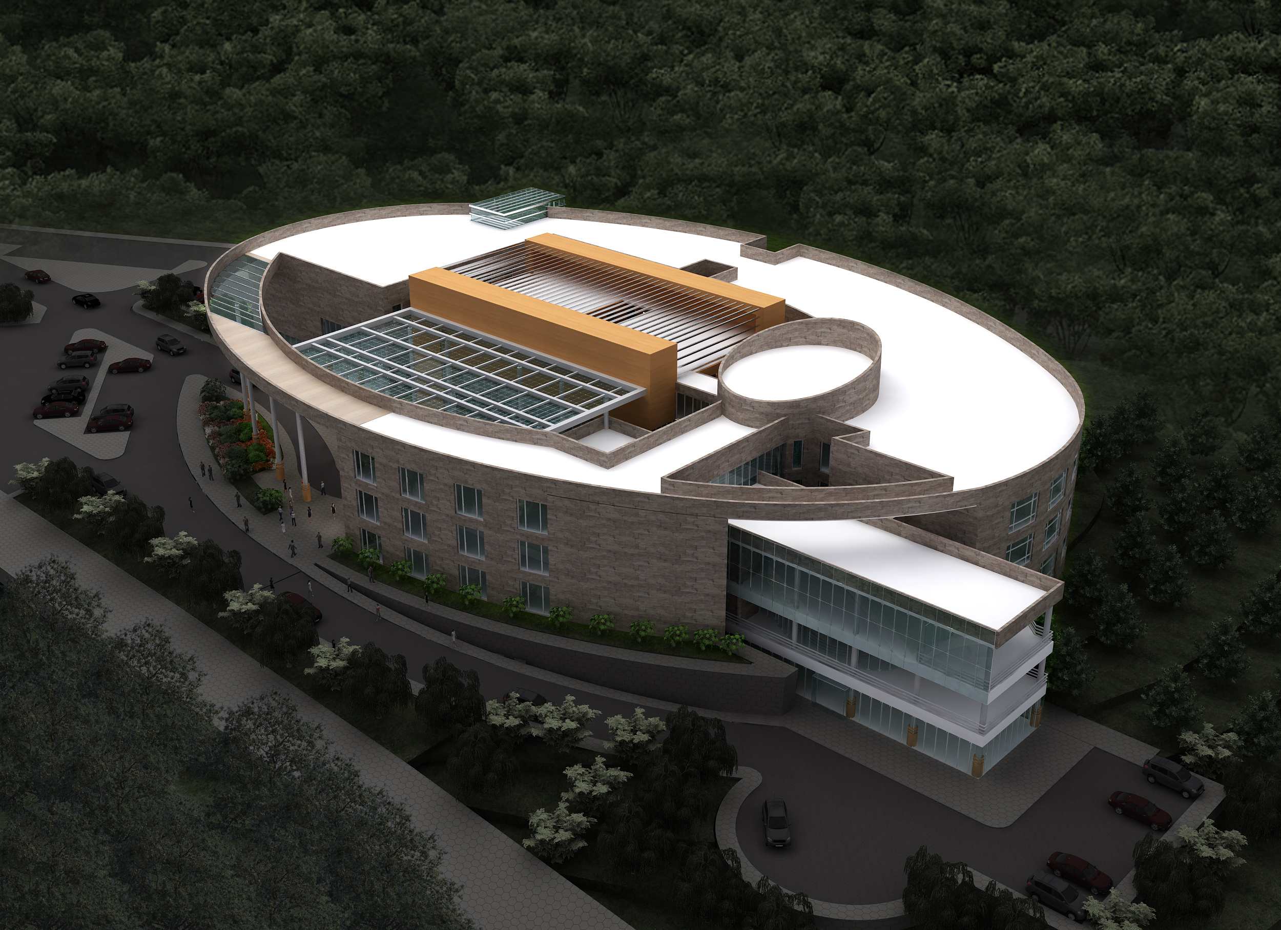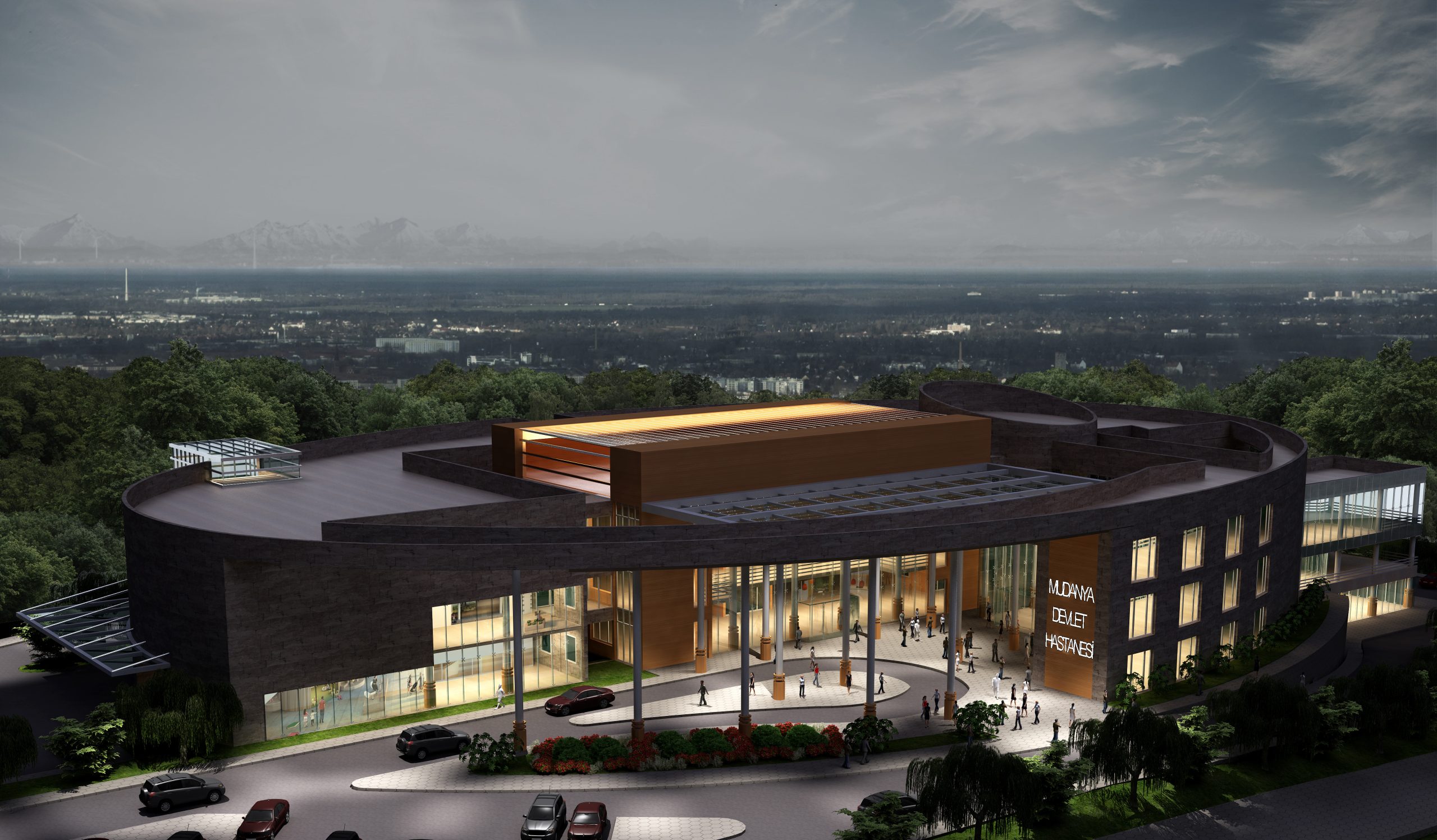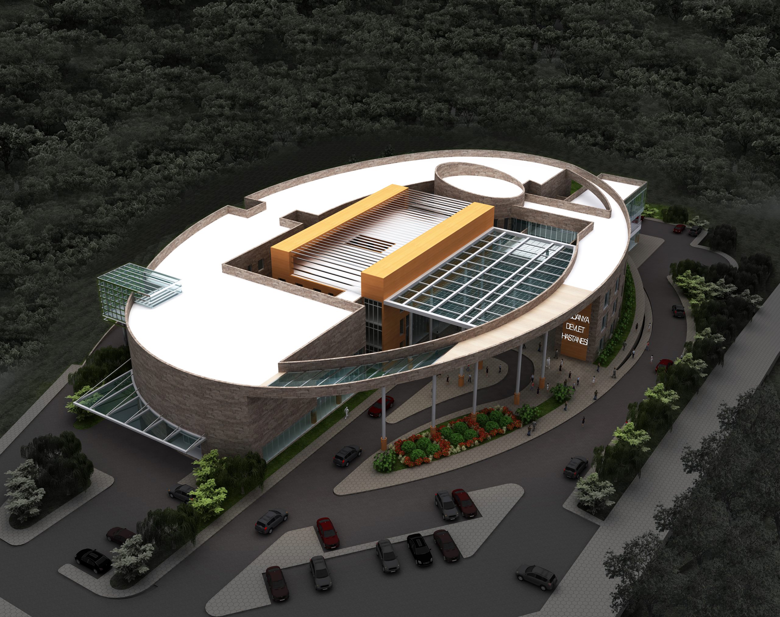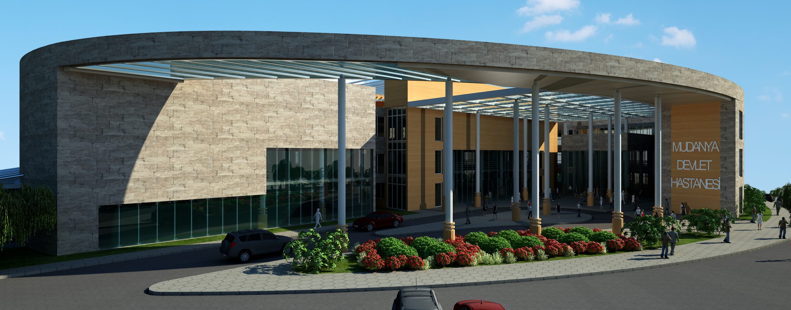 100 Yataklı olarak planlanan Mudanya Devlet hastanesi, elips biçimini, Mudanya’nın en yüksek tepesindeki izohipsinin eğrisinden alır. Hastane girişi elips boşaltılarak oluşturulmuş ve şeffaf bir saçakla örtülmüştür. Hasta yatak bloğu, kuzey yönünde körfez manzarasından maksimum yararlanacak konumda tasarlanmıştır. Yemekhane ve kafeterya gibi sosyal alanlar doğu – batı yönündeki lineer blok da önerilmiştir. Dış kabuğa atıfta bulunacak şekilde planlanan düşey sirkülasyon alanı servis-ziyaretçi çakışmasını ayırmış, kendi içinde bir dil oluşturmuştur.